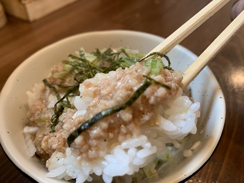 トロミのかかった肉そぼろと海苔とネギなんですが、味がしっかりついていて本当に美味しいんです。