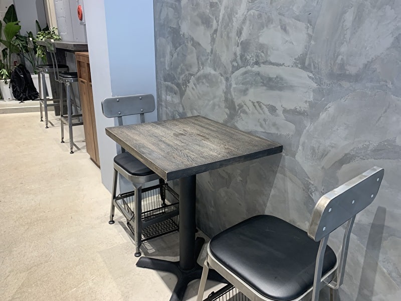 テラス席の椅子とテーブルもコンクリート打ちっぱなしです。