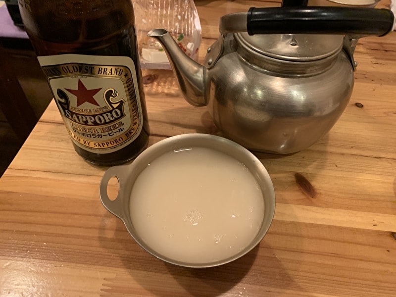 甘味のあるマッコリで、ビールとの相性も良く美味しいヤーツでした。